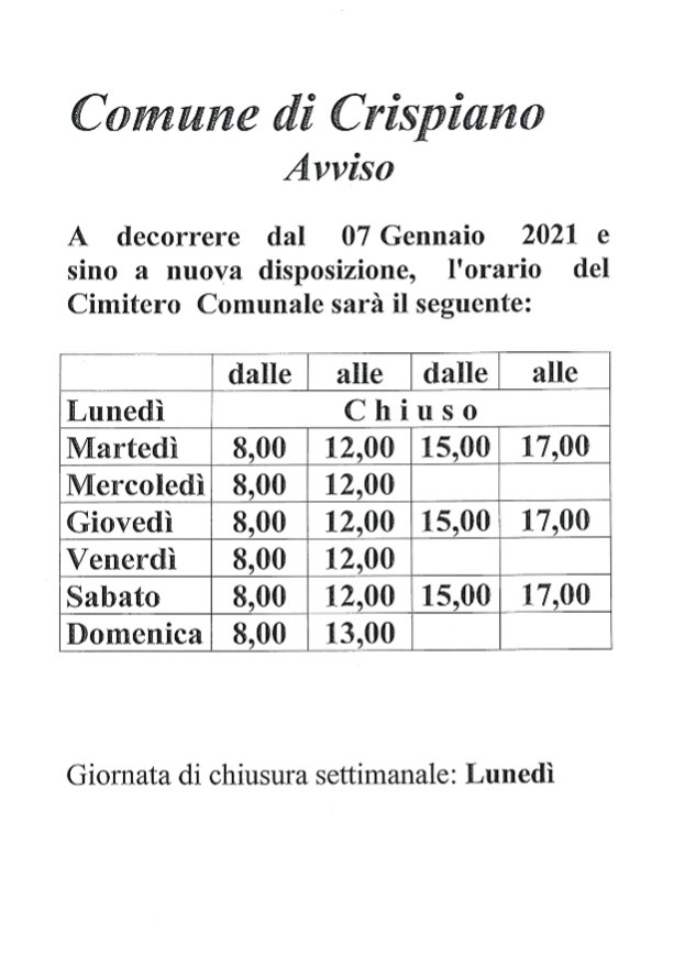 Visualizza gli orari aggiornati direttamente sul sito del Comune di Crispiano.